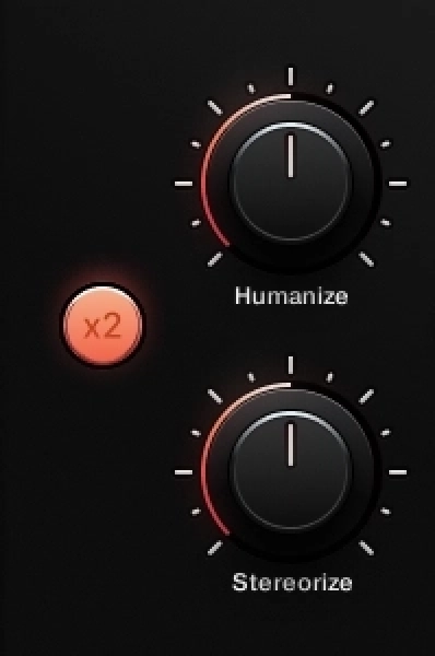 Double your ensemble size and unleash an army of sound with dual-tracked recordings. Humanize adds subtle timing variations between tracks for a flammed effect, while Stereorize pans tracks for enhanced stereo depth.
