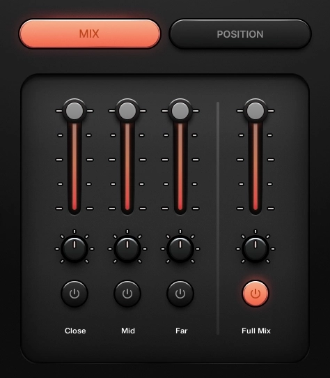 • Three curated mic techniques (Close, Mid, Far), plus a pre-mixed Full Mix blend.